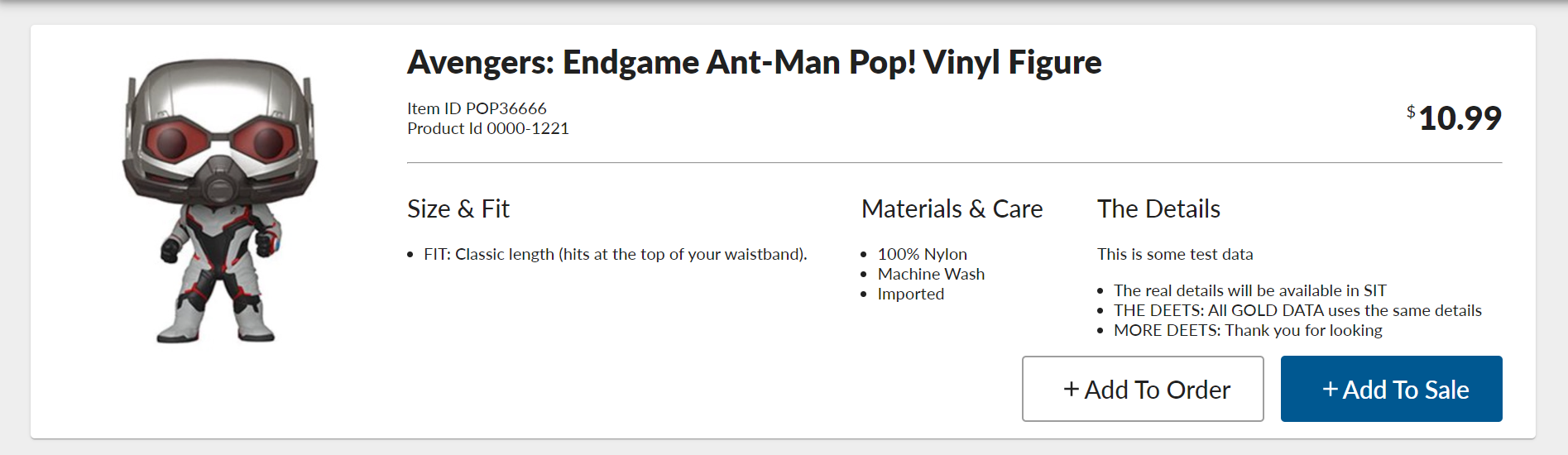 and the options to 'add to sale' and 'add to order'. If the item is eligible for promotion, that would be detailed.
