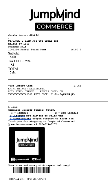 - Jumpmind Commerce supports the production and delivery of email receipts.