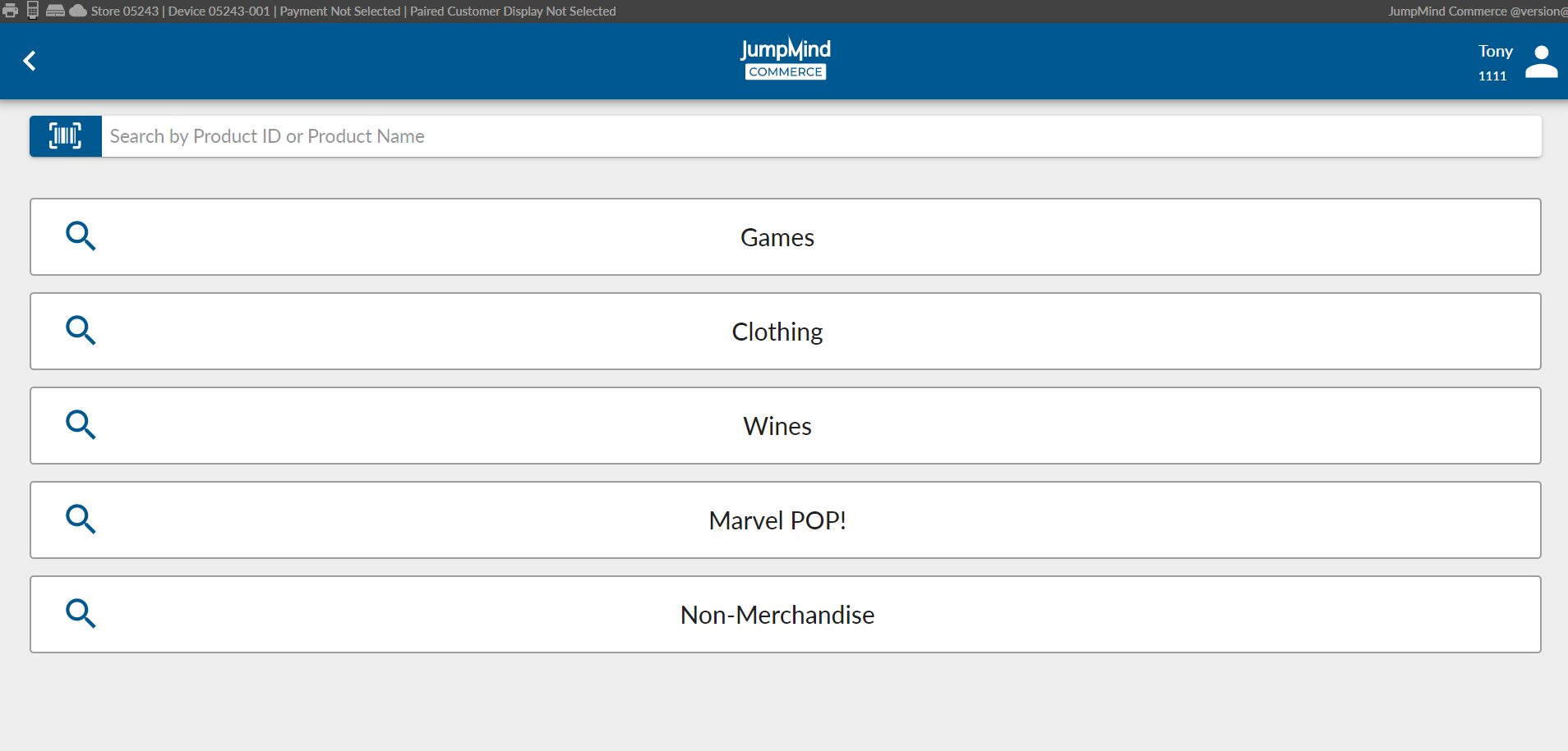 to scan an item for sale, this option will also allow a lookup and selection by item category.